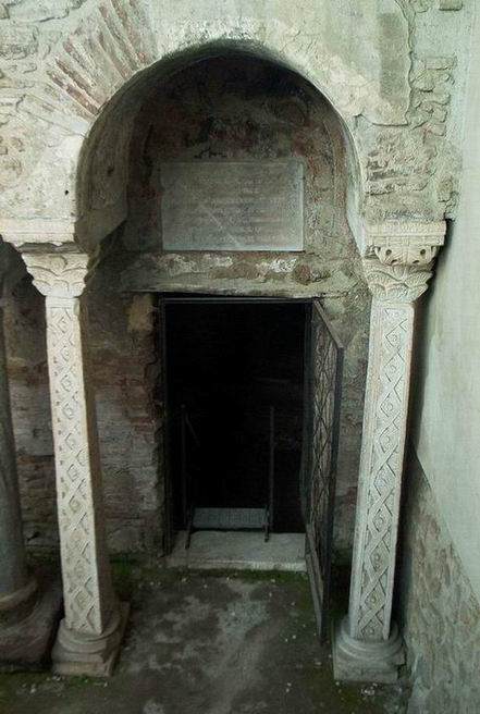 Passann’ pe’ nu cunicolo, s’arriva alla cappella di S.Calonio, ca ce costruetten’ acopp’ ‘a chiesa di S.Felice in Pincis e mò sta talment’ ‘nterrat’ ca par’ ‘na catacomba.