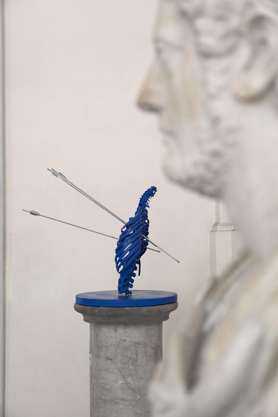 Comm’ ricev’ primm’ ati piezz’ stann’ dint’ ȃ Galleria Farnese è ‘o primm’ è ‘o custat’ ‘e Superman co’ ‘e frecce ‘e fierr’ ‘nfizzat’. ‘A primma cosa ca ven’ a mment’ è “Uà! Ma nun er’ ‘a criptonite che ȏ accerev’?” e invece no, frecce ‘e fierr’’ c’acciren’ l’omm’ ‘e fierr’. Accusi come il simile cura il simile,vale pure ‘o cuntrario forse, che ‘o fierr’ accir’ all’omm’ ‘e fierr’. Chi ‘o ssap’, fatto sta che comunque a livello iconografico fa veni a mment’ a San Sebastiano, poco ma sicuro.