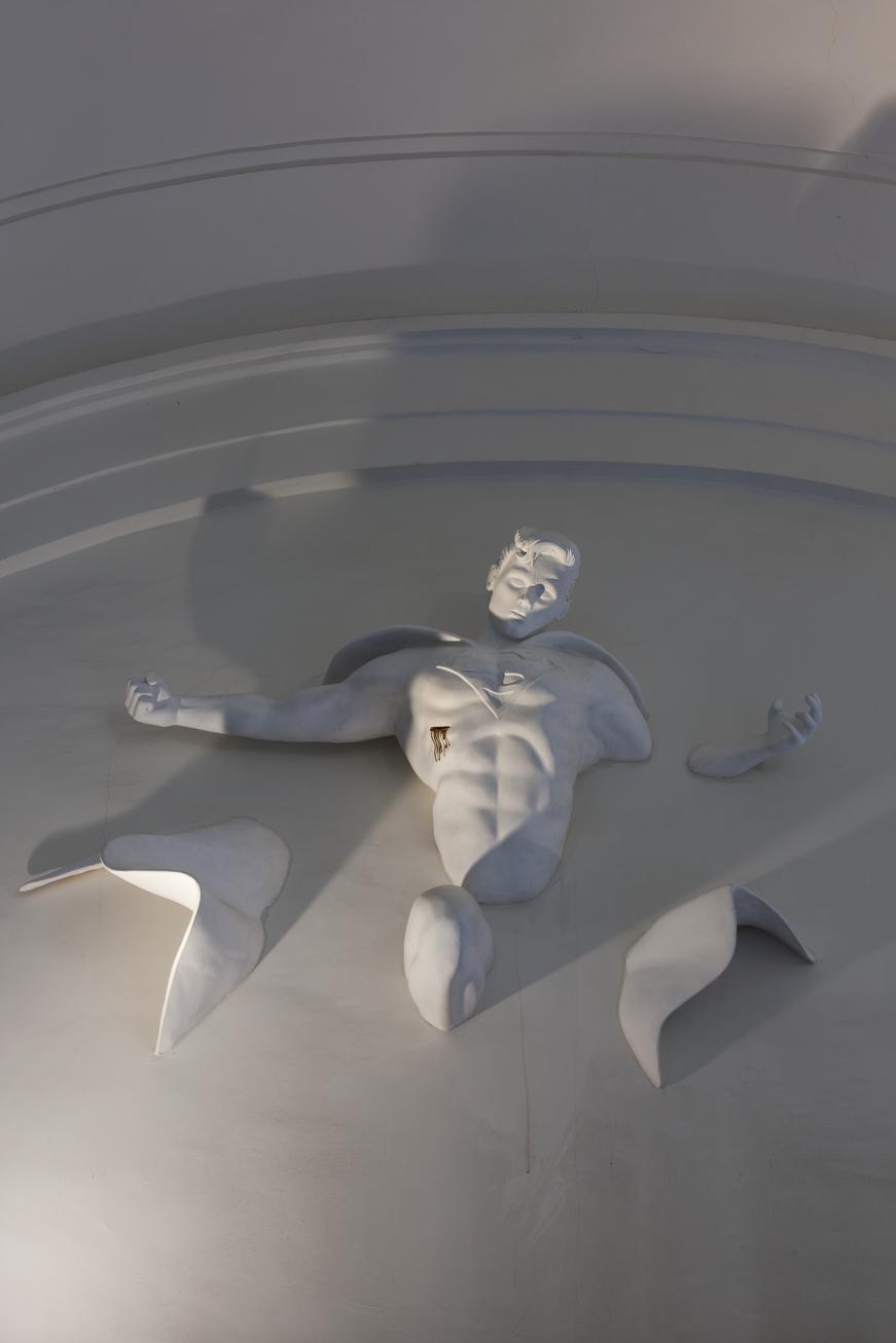 Praticamente chist’artista famoso ‘e l’arte contemporanea ha semp’ faticat’ co’ i super eroi nun tant’ perché ce piacen’ assaje e fumetti ma pecché fondamentalmente ha capito ‘na cosa che è semp’ ‘a stessa: ca tutt’ quant’ amma semp’ tenut’ bisogno ‘e coccurun’ che ce veness’ a salva’.