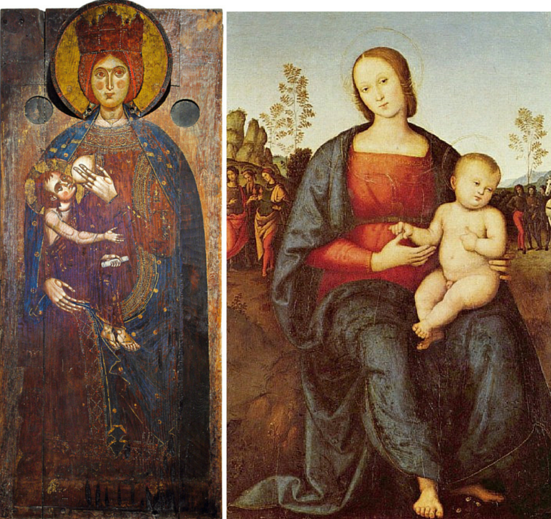 Tutt’ quant’ annanz’ a nu quadro medievale rȃ Maronn’ cȏ criatur’ ‘mbracc’ amma fatt’ ‘a stessa pensat’: Gesù bambiniell’ e bbuon’, mammamà quant’è brutt’!